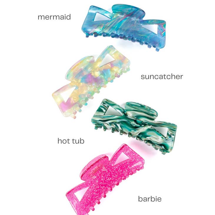 Meet your new fav accessory for summer: Bow Claws. These hair claws are sorta shaped like a cute lil bow tie. These midi hair claws are best suited for making your bedhead look presentable for school drop-off or a windy day on the beach this summer. All of our bow hair claws are ethically made using the thickest, sturdiest acetate out there. Collect them all so you can mix and match to your mood and outfit of the day.