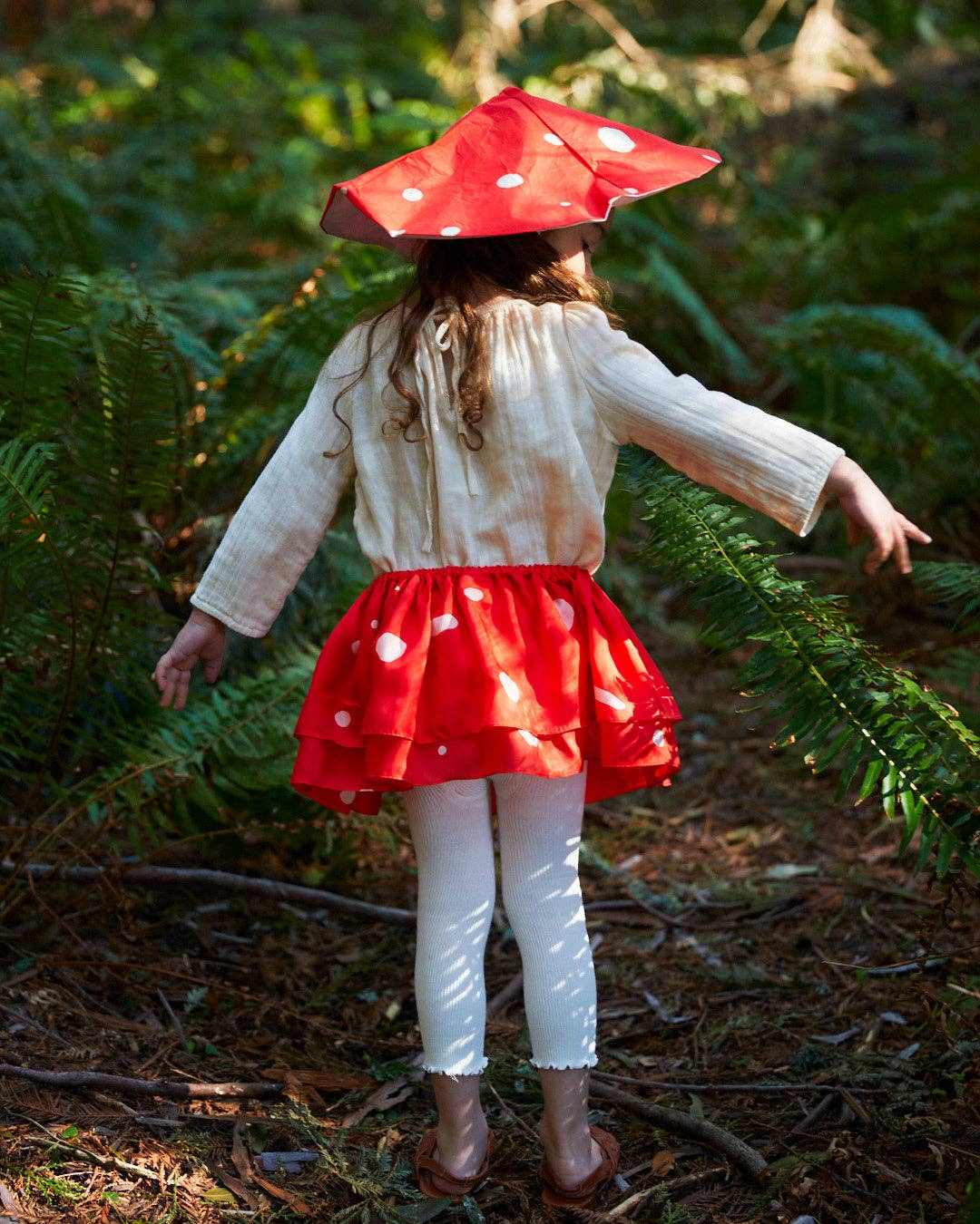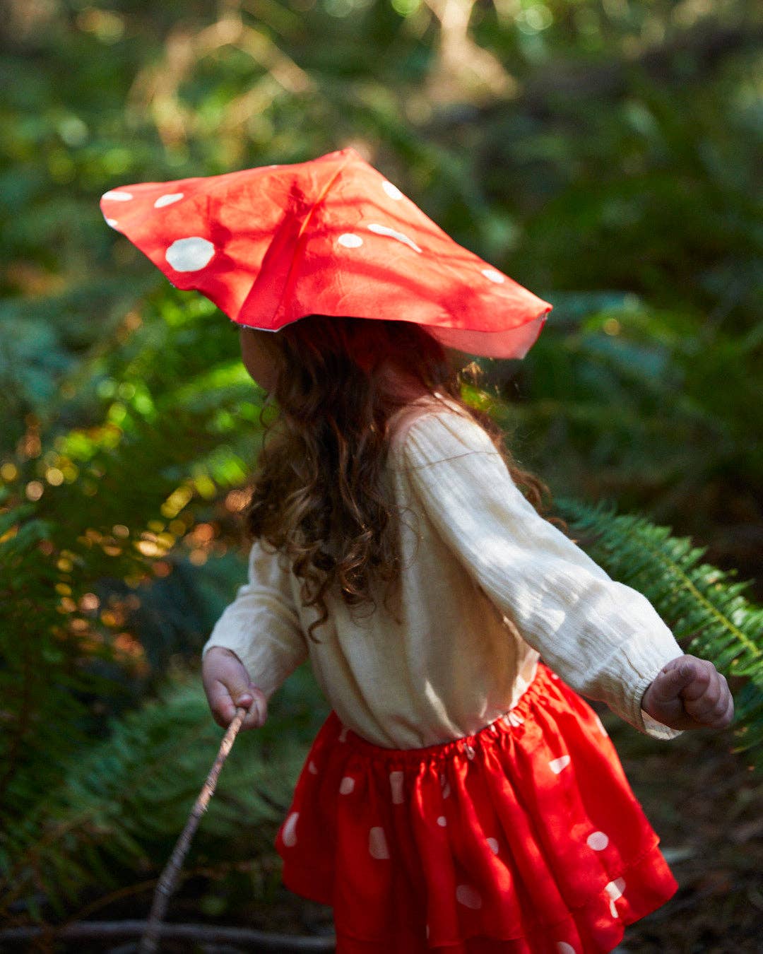 Every nature forager needs a Mushroom Hat! The Silk Mushroom Hat is comfortable, versatile, and is a must-have addition to any young explorer's dress up box. Little ones are able to easily slip them on and off all by themselves and wear them over their favorite outfits for added fun throughout the day!