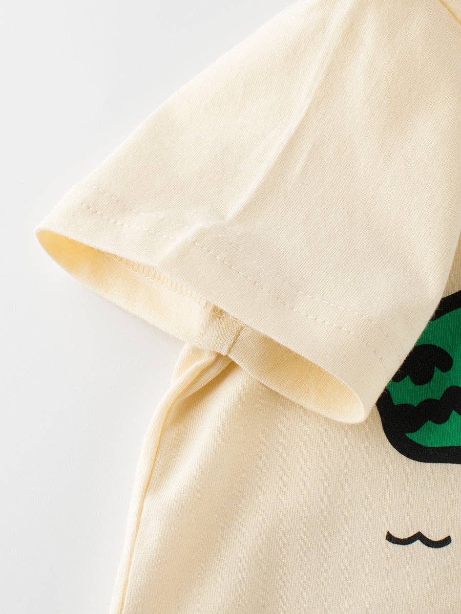 Boys’ Cartoon Alligator Print T-Shirt In European And American Style: Apricot / 120 (5-7Y)