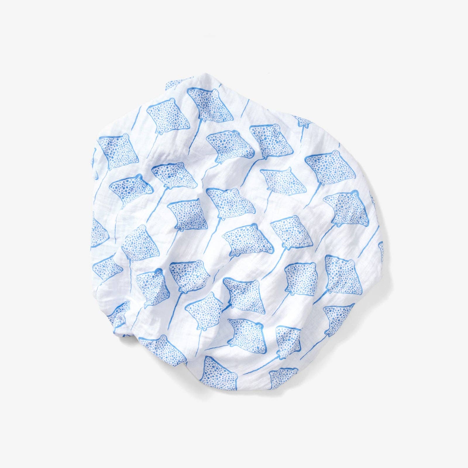 Crib Sheets are the easiest way to set the tone or refresh the Nursery. And in a beautiful print, it can make the space feel right for Baby and you. Our Stingray print celebrates the amazing textured skin of this fascinating creature. In our bright Marine blue, it's the happiest graphic print that looks beautiful on the crib sheet.