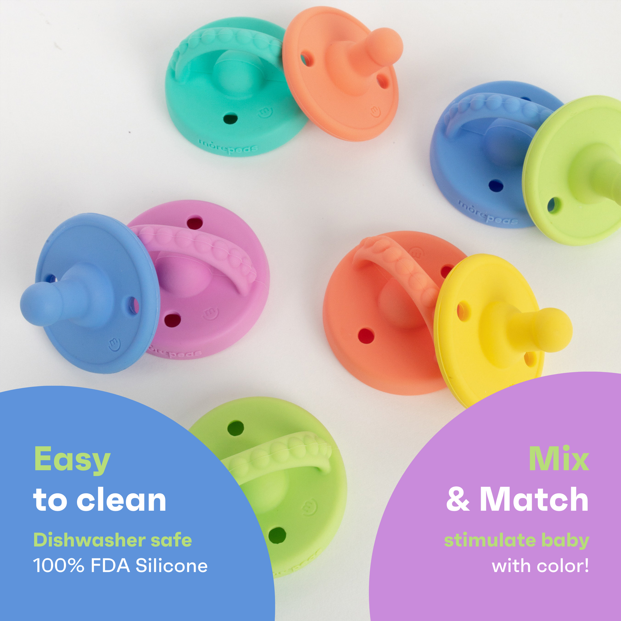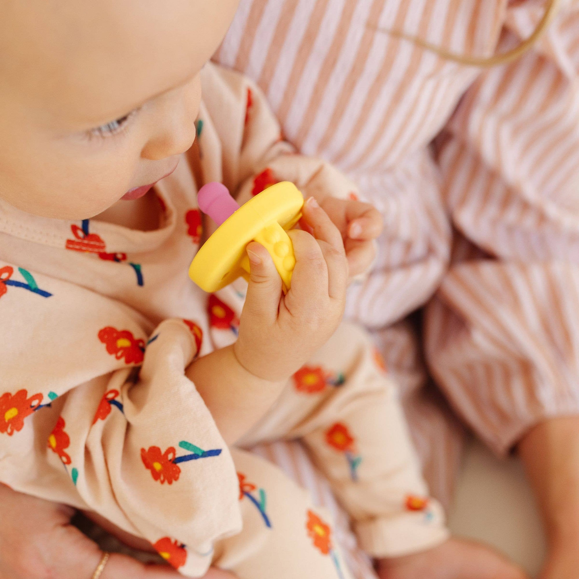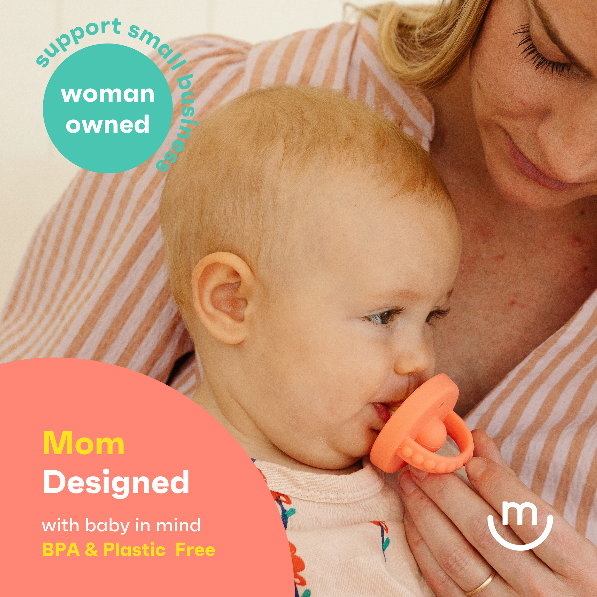 This innovative mom-designed pacifier + case + teether is unlike anything you’ve seen before! Simply flip the pacifier into the protective case to keep it clean and use the versatile ring as a teether to entertain your baby. Made from premium, toxin-free silicone in vibrant colors, it both soothes and stimulates your little one.