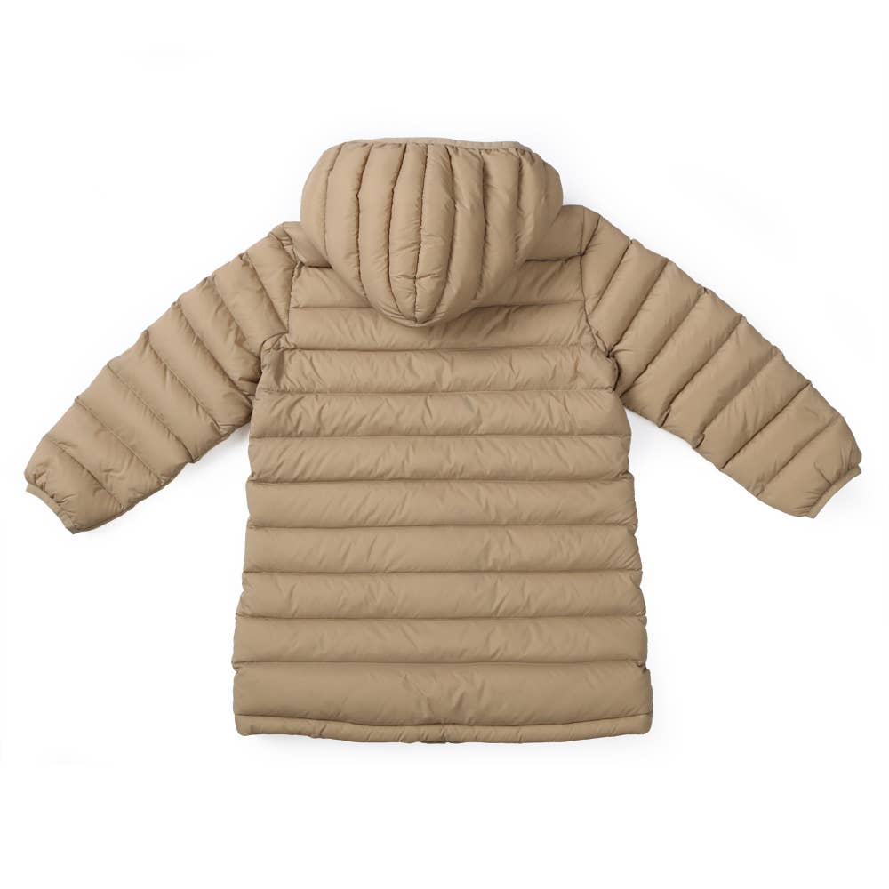 Lightweight Hooded Long Puffer Goose Down Jacket: Beige / S