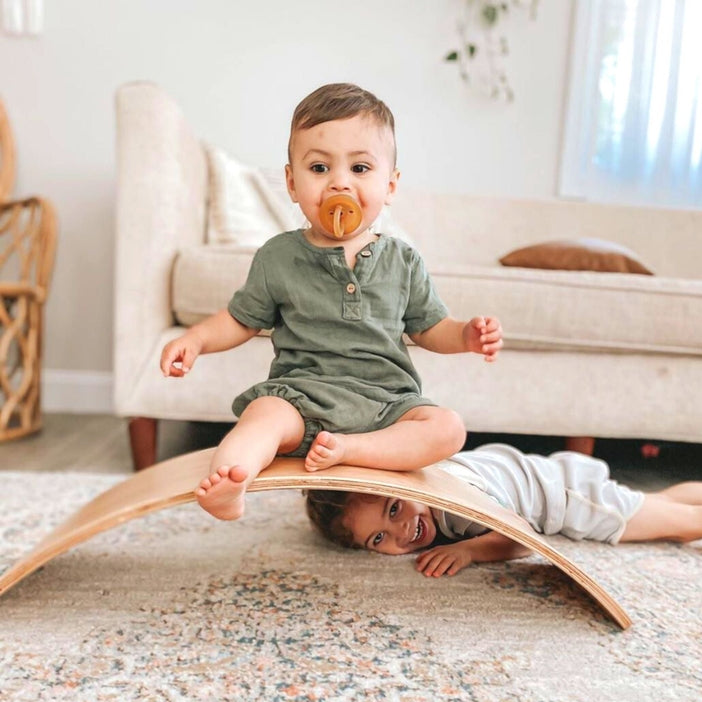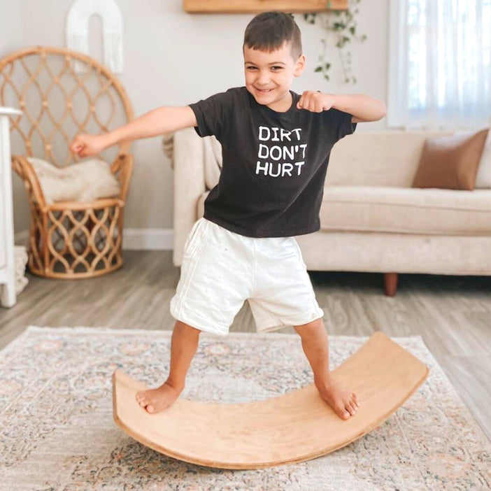 The Starter-sized Wobble Board is ideal for infants who are starting to crawl and take their first steps, while the Regular-sized model caters to children who are ready to explore balance and imaginative play activities.