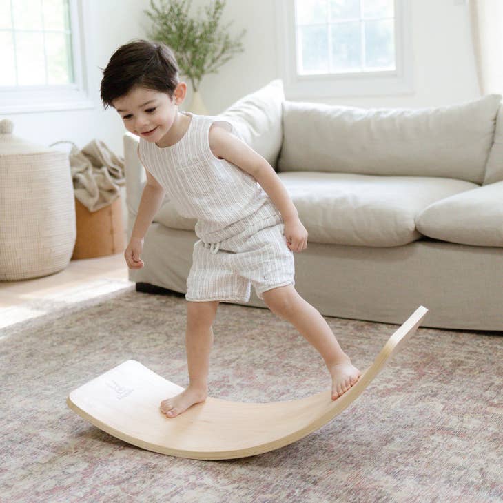 Introduce your little to the Bunny Hopkins Wobble Board - the premium Montessori Balance Board that sparks open-ended, active play. Crafted by hand in the USA, watch your little one's creativity take flight as they explore the myriad ways to use the board - from a balance board to a slide, rocker, bridge and beyond. As they play, they'll strengthen their balance and gross motor skills - readying them to take on life's challenges with resilience. Boasting a 450 lbs weight limit, this board is built to last and will become an heirloom-quality staple in any playroom.