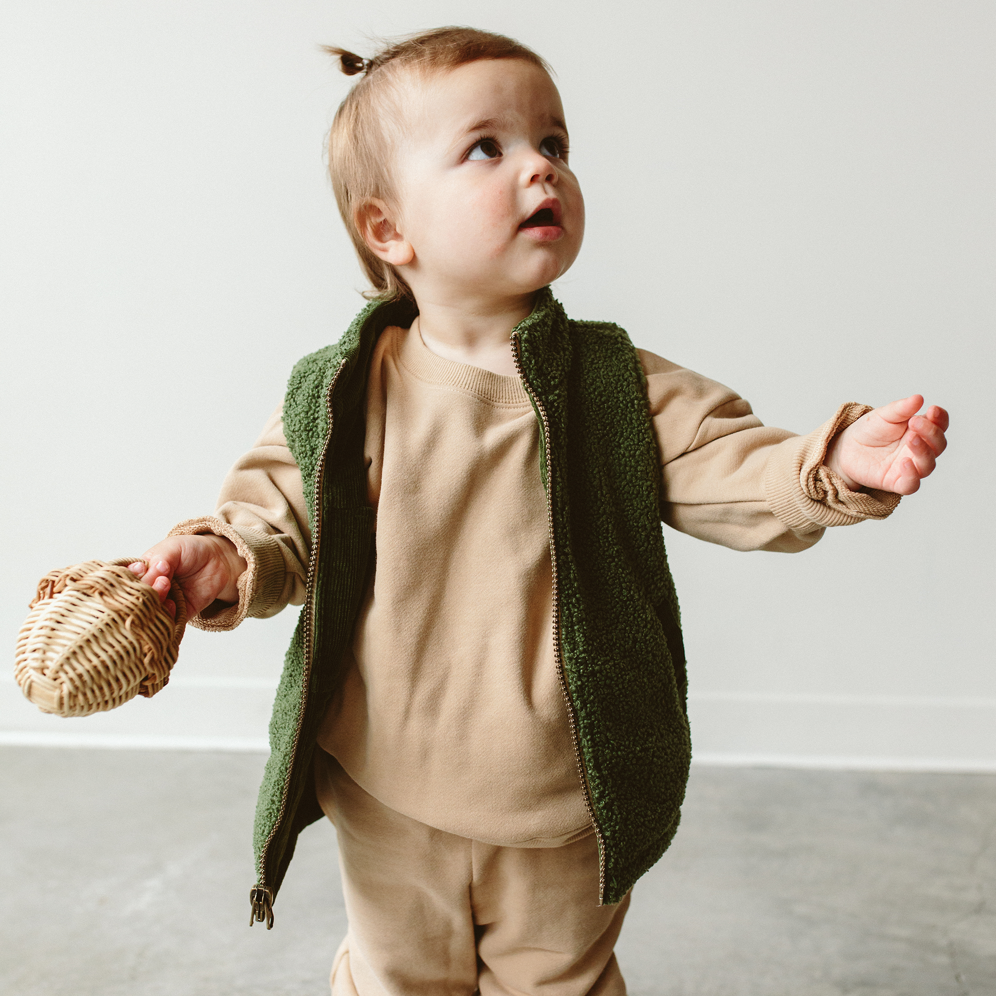 Your new favorite layer. Our premium corduroy and sherpa reversible vest is the ultimate essential for toddlers and big kids! Made from corduroy and sherpa fabric, this versatile vest offers both warmth and style! Perfect for chilly days, adventures, and outdoor exploring!