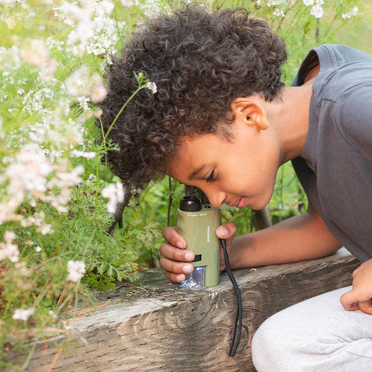 Explore details up to 120x magnification with built-in LED lighting and adjustable zoom. Powered by 1 AA battery (not included).designer : Koens & Middlekoop Design, Material :ABS, acrylic, circuit boardkraft window box3 x 4.5 x 1.25 (lanyard) 6.754.25 x 6.75 x 1.25