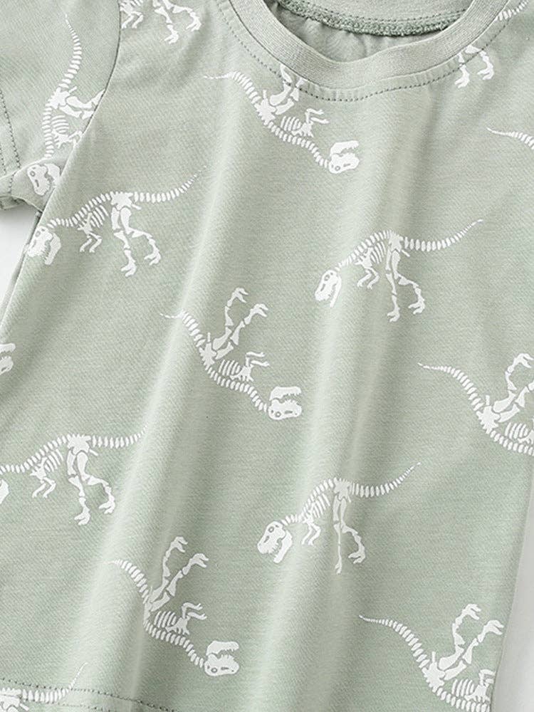 Boys’ Bony Dinosaur Cartoon Pattern Short Sleeves T-Shirt In European And American Style For Summer: Green / 130 (7-8Y)